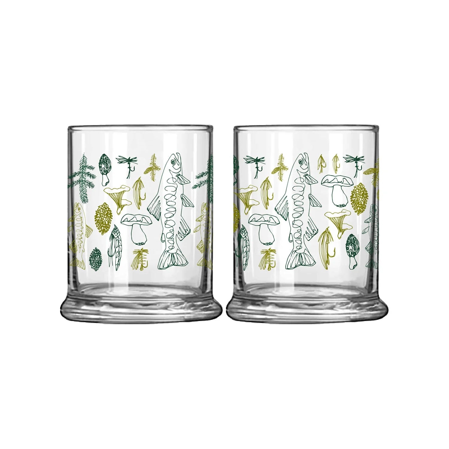 The Rep Your Water Fall Colors Old Fashioned Glass (also referred to as a Lowball Glass) is an 11 oz whiskey or rocks glass featuring custom, metallic artwork themed around the vibrant colors and fish of the autumn fly fishing season. Part of Rep Your Water's conservation-focused drinkware line, this glass is durable and generally recommended for handwashing to preserve the unique metallic design.
